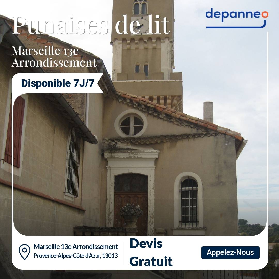 Vous avez besoin d’une extermination de punaises de lit à Marseille 13 près de l’avenue de la Croix-Rouge, du chemin de la Rose, du boulevard de la Barasse ou de la rue de l’Église ? Depanneo vous vient en aide !