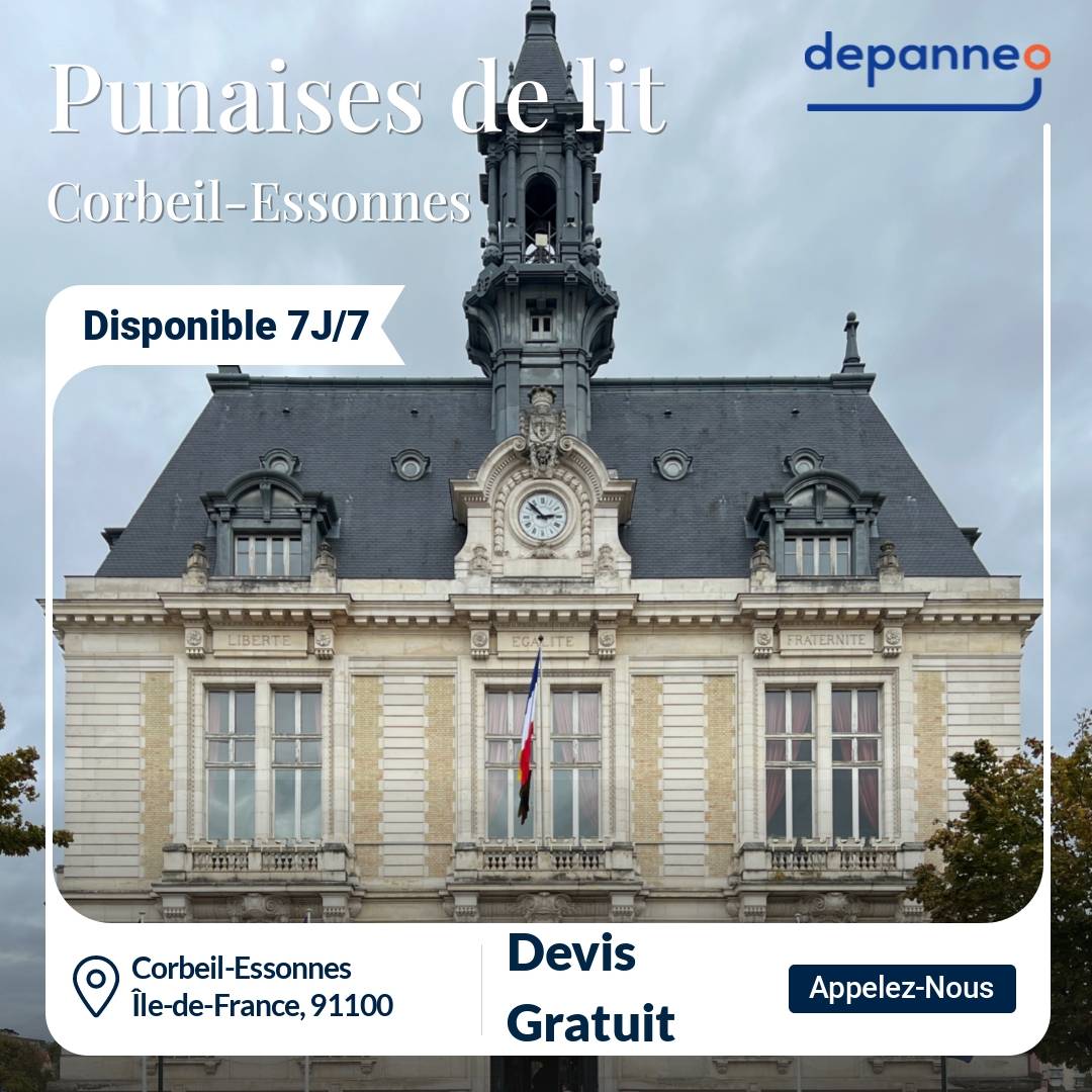 Depanneo vous envoie un expert en punaises de lit de Corbeil-Essonnes dans n’importe quelle rue du 91100 : rue Saint-Spire, rue Félix Faure, avenue du 8 Mai 1945, rue Saint-Liesne, rue Gounod…