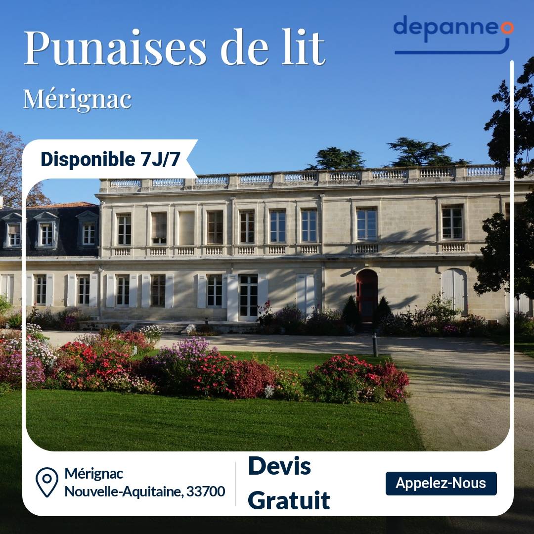Nos interventions pour une élimination de punaises de lit à Mérignac sont possibles dans tous les secteurs, de Beutre au Château, en passant par le Burck, Capeyron ou ARlac. Appelez vite et obtenez un devis !