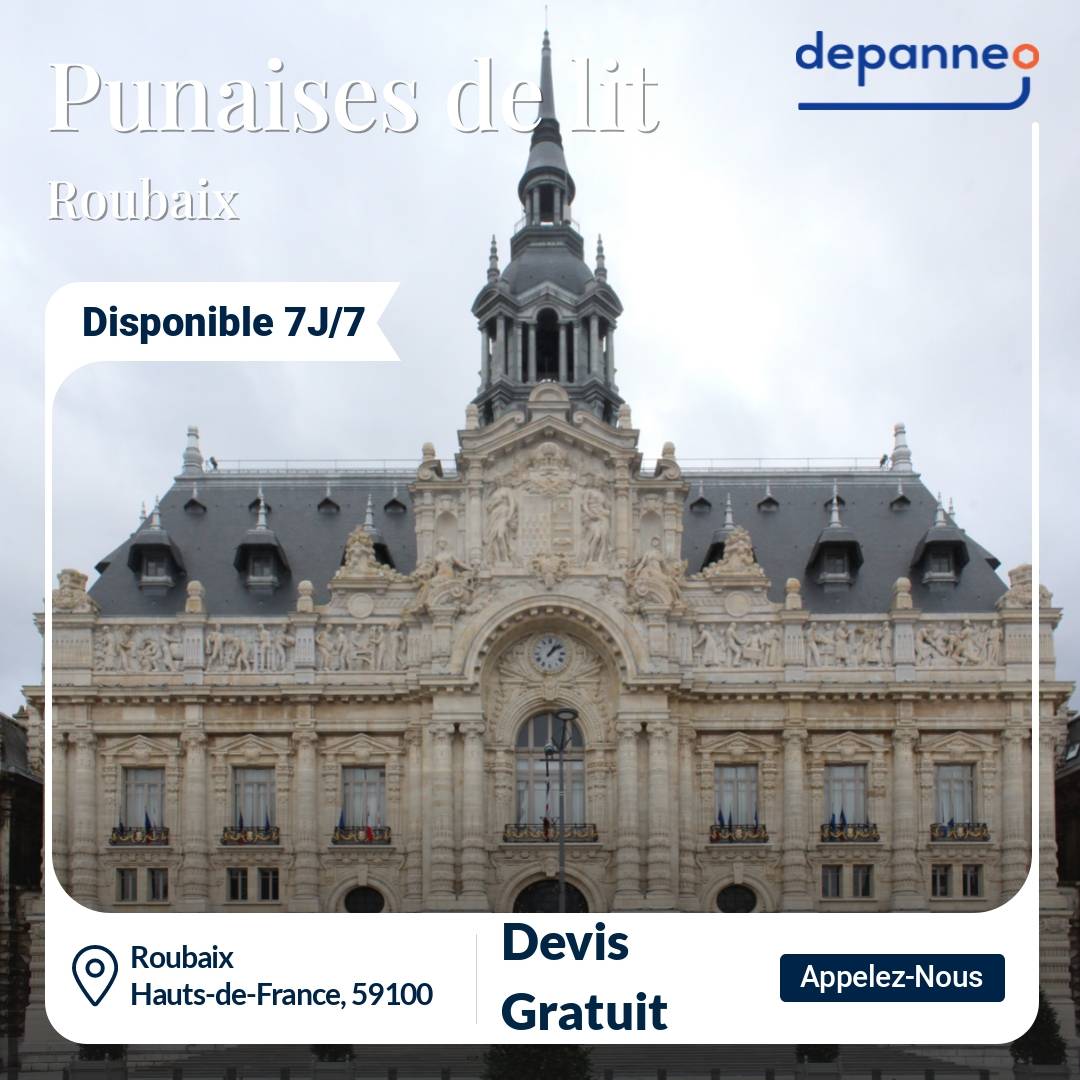 Nos experts en élimination de punaises de lit à Roubaix sont accessibles dans toutes les rues de la commune, de la rue de l’Hospice à la rue Pierre de Roubaix, en passant par la rue de Barbieux ou la rue du Maréchal Foch.