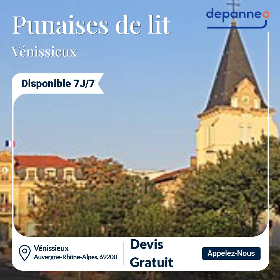 04 13 33 38 93L’éradication des punaises de lit à Vénissieux est souvent plus difficile que prévu. Les puces de lit se dissimulent dans toutes les fissures, les coutures de matelas et dans les coins les plus sombres. De plus, elles sont également résistantes à la majorité des insecticides disponibles en vente libre. Vous devez avoir recours à des méthodes professionnelles si vous souhaitez gagner la guerre. Pour y arriver, vous devez donc utiliser Depanneo. Notre service est à votre disposition afin de vous envoyer le pro le plus compétent de tout le 69200. Ce dernier est disposé à vous venir en aider dans n’importe quelle rue de la ville : avenue Jean Cagne, rue de la République, avenue Marcel Houël, avenue Jules Guesde, rue Henri Barbusse… Appelez-nous sans tarder et recevez gratuitement un devis !