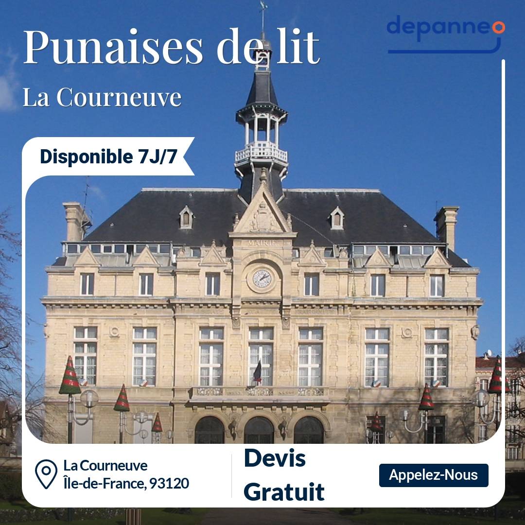 Ne sous-estimez jamais une infestation de punaises de lit à la Courneuve. La présence de ces insectes dans votre literie peut vous rendre la vie difficile. Ces insectes interrompent votre sommeil par leurs piqûres. Ils vous provoquent de l’anxiété, des crises d’urticaire et des réactions allergiques. Il est donc plus sage de contacter un spécialiste expérimenté pour les éradiquer complètement. Nos techniciens sont sélectionnés pour leurs qualifications, mais également pour les prix attractifs qu’ils proposent et pour leur renommée. Ils vous assurent des prestations de haut niveau sous 24 heures, que vous habitiez dans le quartier du Bourget, de la Fauconnière, des 4000, près de la Tour ou dans le centre-ville. Vous avez un commerce ou un établissement d’hôtellerie dans l’avenue Waldeck Rochet ou la rue de la Convention ? Vous avez observé des punaises de lit dans votre habitation ou votre logement collectif de la rue Edgar Quinet ou de la rue Henri Barbusse ? Contactez rapidement Depanneo ! Nos experts interviennent pour votre expertise de locaux. Ils trouvent les recoins dans lesquels se cachent vos punaises de lit à la Courneuve et élaborent une stratégie minutieuse. De plus, ils sélectionnent avec vous la technique la plus efficace pour exterminer vos parasites : traitement à l’azote liquide, traitement thermique, aspiration, traitement chimique, etc.