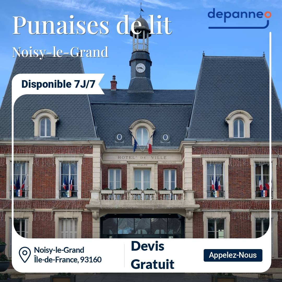 01 84 80 98 07La lutte contre les punaises de lit à Noisy-le-Grand peut parfois s’avérer compliquée. En effet, les punaises de lit se cachent dans les moindres recoins et sont parfois résistantes aux produits insecticides trouvés dans le commerce. Vous avez besoin d’une stratégie d’éradication professionnelle afin d’en venir à bout. Celle-ci ne peut être menée à bien qu’en passant par Depanneo. Notre plateforme est là pour vous aider en vous fournissant le meilleur expert disponible dans le 93160. Celui-ci est prêt à vous aider dans toutes les rues de la commune : rue de la République, rue du Montfort, avenue Émile Cossonneau, boulevard du Mont d'Est, rue des Abbesses… En nous appelant tout de suite, vous pouvez recevoir votre devis gratuit !