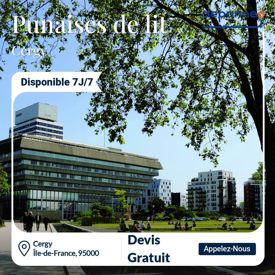 01 84 80 98 07Quand il est question d’éradiquer des punaises de lit à Cergy, vous désirez sûrement avoir affaire à un professionnel qui connaît vraiment tous les aspects de ce métier. C’est pour cela que vous devez utiliser notre plateforme Depanneo. Nous disposons d’un réseau de professionnels qualifiés qui desservent régulièrement tout le 95000 pour éliminer les puces de lit. Nos techniciens sont accessibles dans l’intégralité des zones de la ville, notamment dans le quartier Préfecture, aux environs des Hauts de Cergy, à Cergy Village, aux Linandes et à Cergy Port. Vous pouvez aussi obtenir une intervention dans la journée par un expert d’Île-de-France si vous habitez dans la rue Nationale, près de la rue des Merveilles, de la rue des Bâtisseurs, de la rue du Petit Albi ou de la rue des Piquettes.