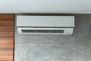 L’air est aspiré à l’aide d’un ventilateur présent dans l’unité extérieure. Il est mis en contact avec les capteurs contenant le fluide frigorigène. La chaleur extraite par la pompe à chaleur est transmise à l’air du logement à l’aide de ventilo-convecteurs. Grâce à un réseau de gaines passant dans le faux plafond, de l’air est soufflé pour chauffer l’habitation. Chaque pièce est équipée de son split ventilo-convecteur.