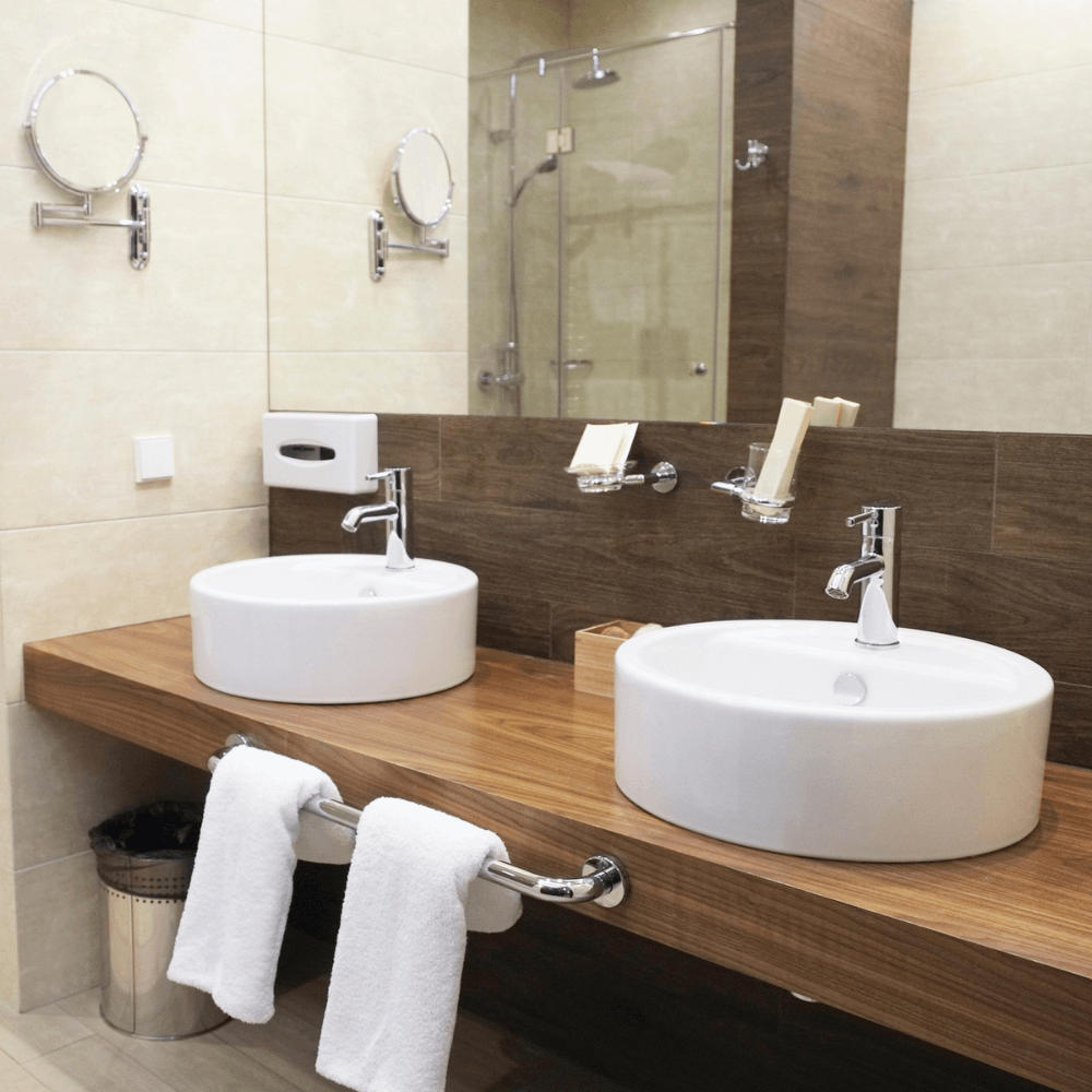 • Chiffon, bassine et produits anticalcaires pour nettoyer les pièces et protéger le plan de travail.